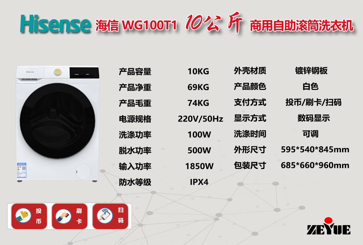 海信 WG100T1 10公斤商用自助滾筒洗衣機(jī)